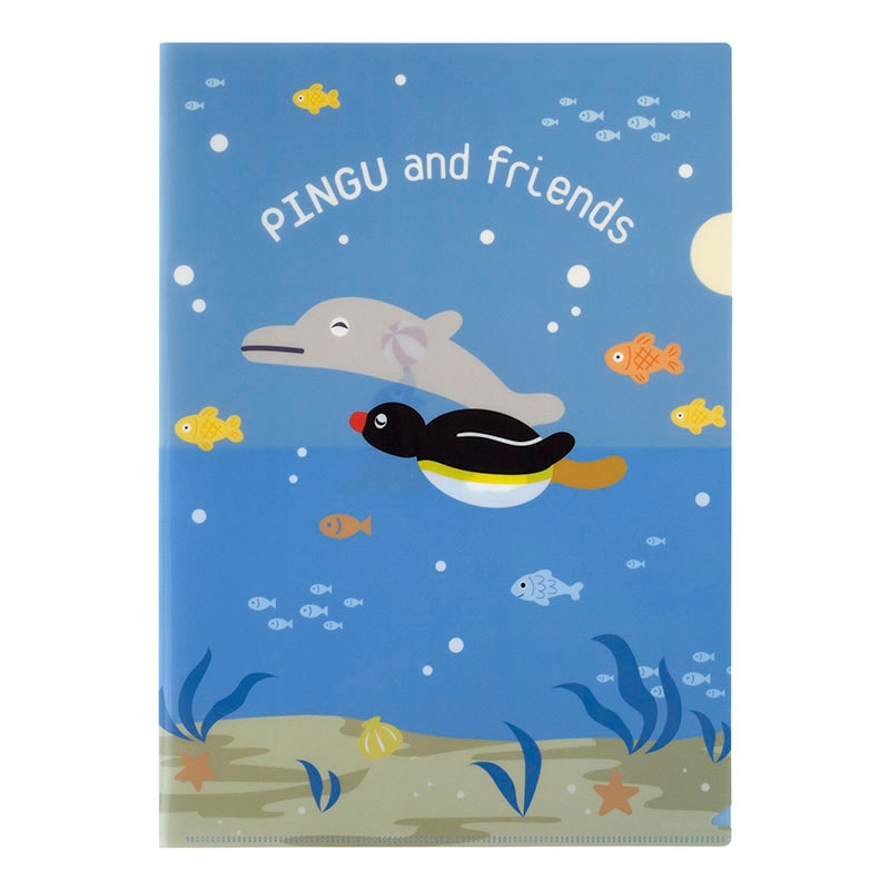 ピングー&フレンズは全国の水族館用に新たに作成されたアートシリーズです。ピングーがイルカと海底を泳ぐ絵柄が可愛いA4サイズのクリアファイルです。