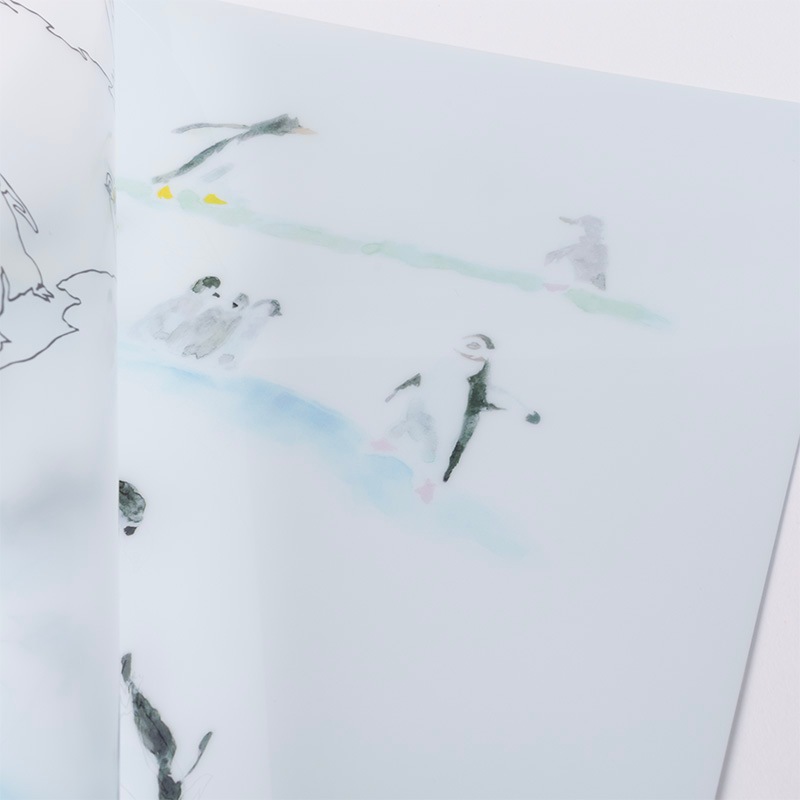 陸を歩くペンギンから、水の中を泳ぐペンギンまで、すべてつながったデザインです。